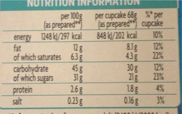 • Calories: The total energy provided by the cupcake.